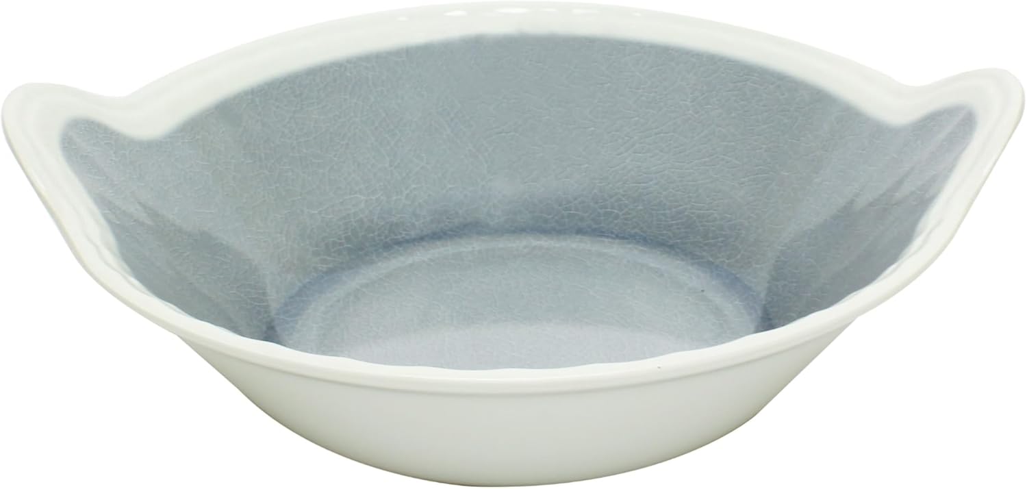 The TrueCraftware (1-quart) 32 oz Graham Round Serving Bowl with Handles combines style, durability, and convenience, making it an essential addition to any kitchen or dining space. Its soft gray exterior with a creamy ivory edge adds a touch of sophistication, effortlessly complementing both casual and formal table settings. Designed with built-in ergonomic handles, this bowl ensures secure and comfortable handling, allowing for easy transportation and serving of food, whether at home, in a restaurant, or at catered events.