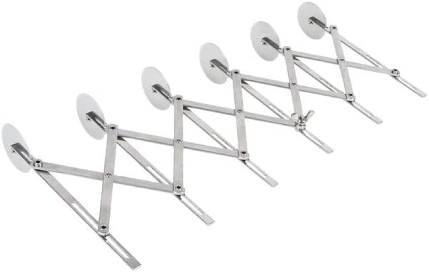 Featuring five 2 1/8" cutting wheels, this tool offers incredible flexibility. Whether fully expanded (up to 5" between wheels) or collapsed (as close as 1/2" apart), it allows you to make even, consistent cuts across various types of dough. Perfect for portioning pasta, slicing cookies, or segmenting pastry with ease and accuracy.